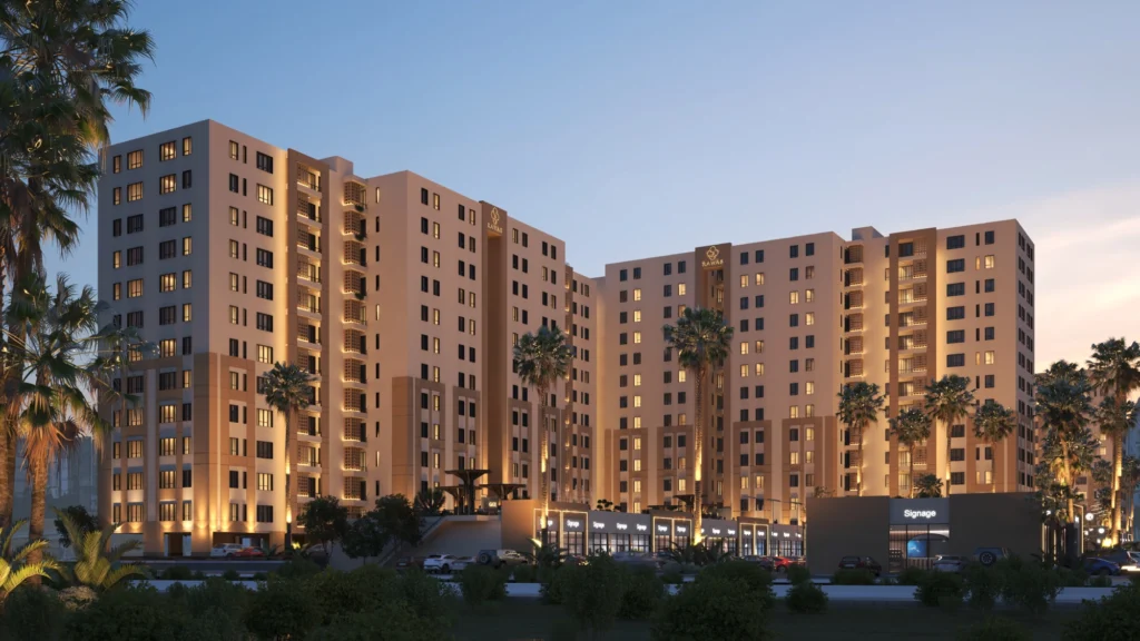 RAWAS GATE is a project featuring numerous shared services, designed with modern façades, high-quality finishes, long-term warranties, and layouts tailored to meet the needs of our clients. It also includes a number of commercial shops that cater to residents’ daily requirements.